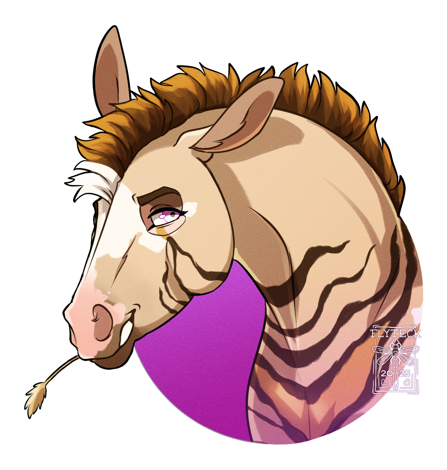 Godiva is free spirited and outgoing. She's still young and sprightly, and doesn't plan on growing up any time soon. Godiva has a sharp tongue and a keen mind. While she knows how to show respect, she often chooses not to, and she's no pushover. She's very kind and willing to help when she sees fit, but if she doesn't like you or your cause then you're out of luck. She likes to weave random objects into her mane and tail, and can often be seen with silk ribbons tied around her tail. She's also usually chewing on a grass stem.