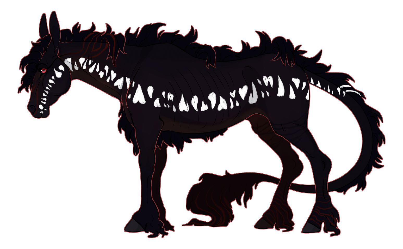 Still filled with fire and bees, he stalked through the dead forest once more. He heard the sound of grinding teeth in the brambles ahead. His pace quickened. A rat. Something to fill his void. The gnawing fell silent, but he knew where it had come from. He stuck a hoof into the thorns, and the rat leapt from the other side, skittering away.
