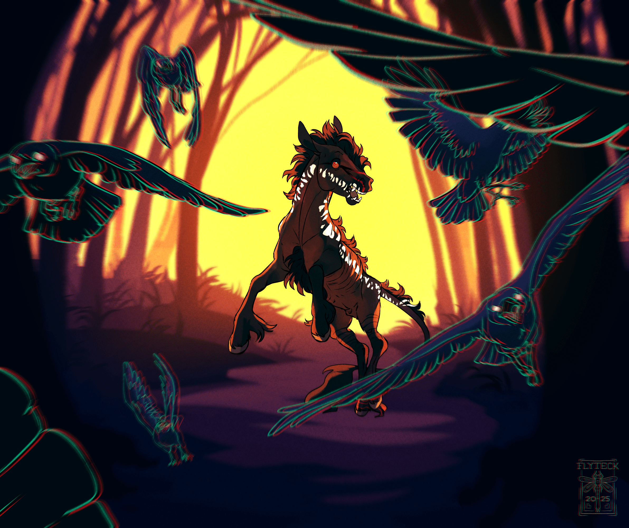 The feeling twisted, becoming hot and painful. He reared, and screamed to the sky, drowning out the sound of the mocking crows. His call echoed through the trees before fading into still silence once more.